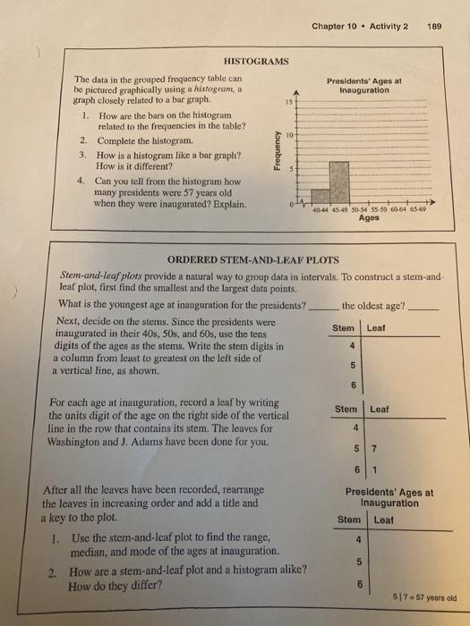 Solved Chapter 10 Activity 2 189 Presidents Ages At Chegg Com