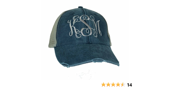 Mary S Monograms Monogrammed Distressed Trucker Hat Navy Blue At Amazon Women S Clothing Store