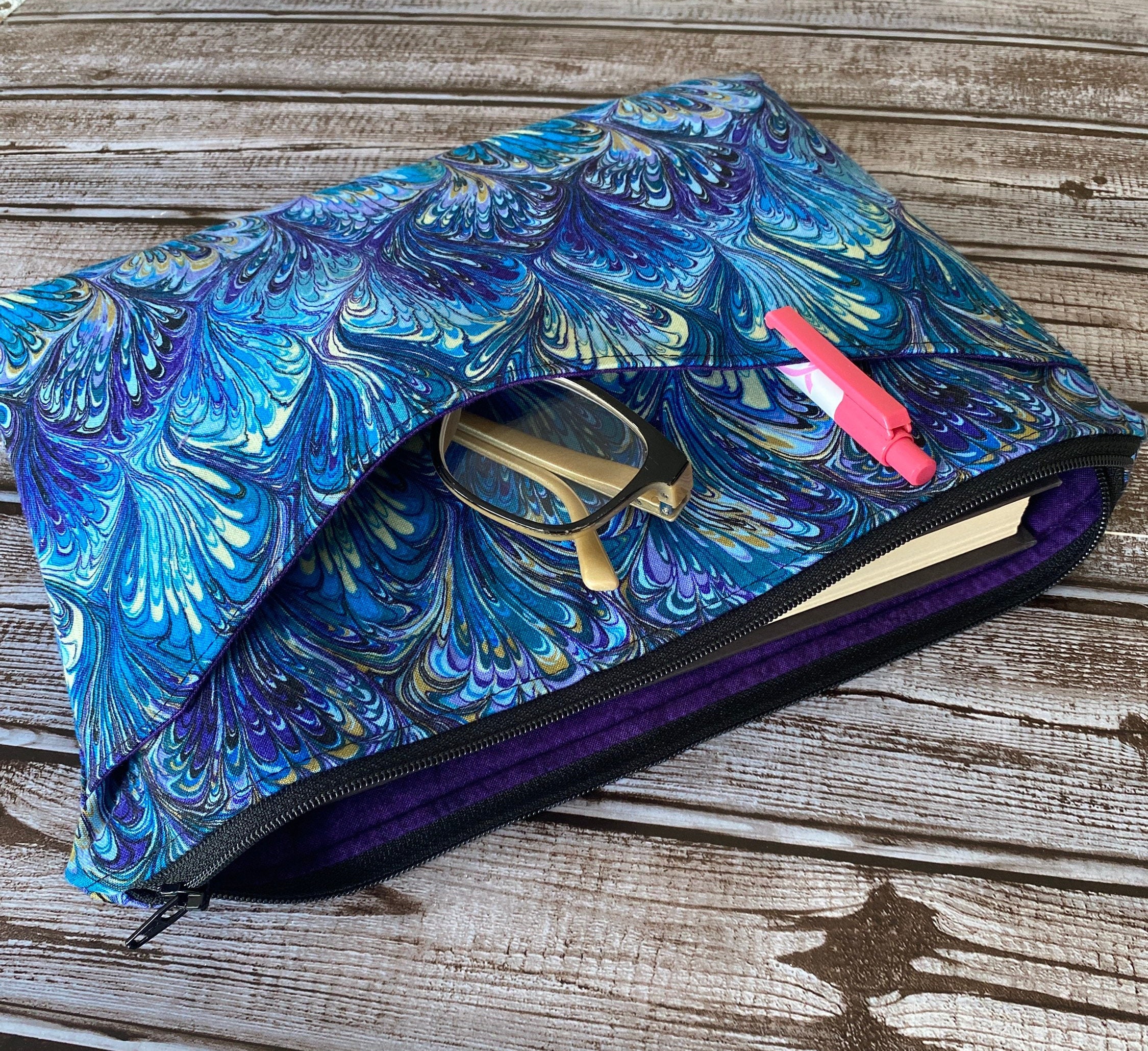 Book Sleeve With Top Zipper Closure And Front Pocket Blue Etsy